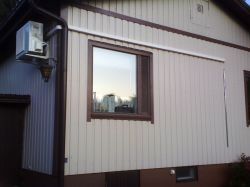 Ulkoyksikkö asennettiin lähes katon rajaan, kun ei sitä haluttu laittaa julkisivulle ja paikka osoittautui parhaimmaksi ajoväylän kohdalle. Ylös asentaminen ei yleensä ole järkevää sillä, ulkoyksiköstä roiskuu vettä yleensä vähän seinälle. Tässä tapauksessa sillä ei kuitenkaan ole merkitystä, kun seinä on peltiprofiilia.